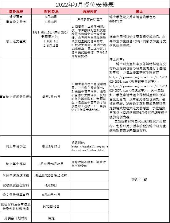 3.授位系统的毕业年月为:答辩通过年月。 毕业填报系统的毕业时间为:2022年9月30日。
