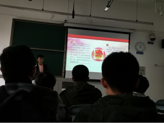 大会初始各班团支书对开学以来的各类工作以及活动进行总结。而后,全体同学起立,以饱满的热情重温入团誓词以及奏唱团歌。在团旗下重温誓词,时刻提醒自己不忘初心,牢记自己身为一名共青团员的责任与担当。齐唱团歌,更加坚定我们对团组织的拥护,对组织优秀领导的肯定。