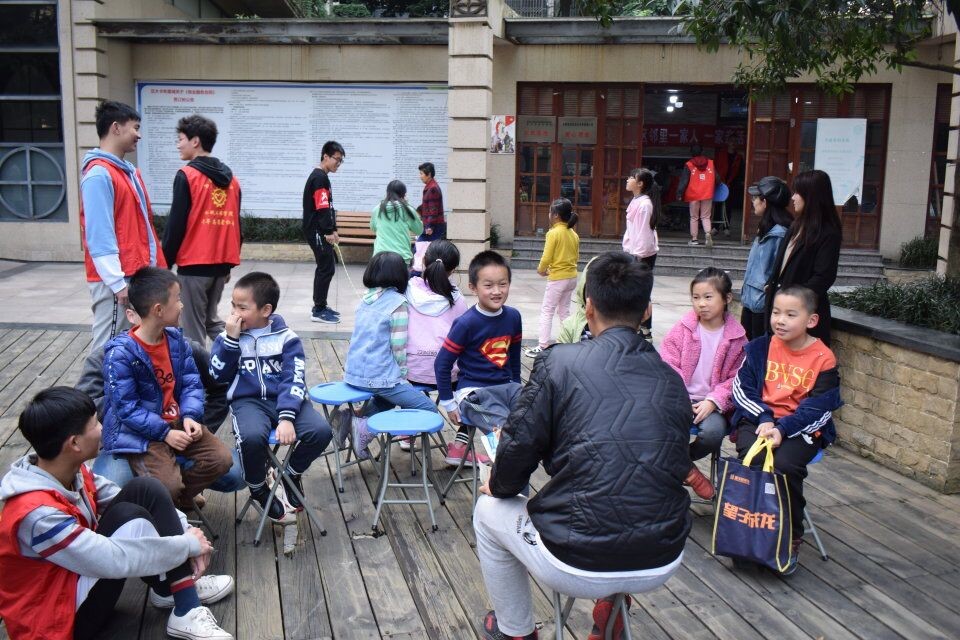 辅导完作业就进入到有趣的室外活动环节,与以往的游戏环节不同,此次室外活动变成了趣味科学知识小课堂。在志愿者的带领下,小朋友们搬着板凳在活动场地整齐坐好,志愿者也拿出自己准备好的趣味科学知识,向小朋友们讲起“火苗为什么是红色”“风筝怎么飞上天”等等各种各样的科学小问题,有趣的问题迅速引起小朋友的好奇心,让小朋友对科学知识产生了浓厚兴趣。通过这样的小课堂小朋友们学习了很多新知识,志愿者也得到了不少收获。