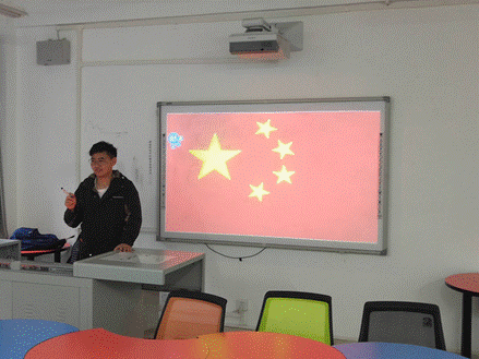 随着电脑上国歌的旋律响起,全体同学起立奏唱国歌,歌曲结束之后,主持人开始简介此次活动主题。