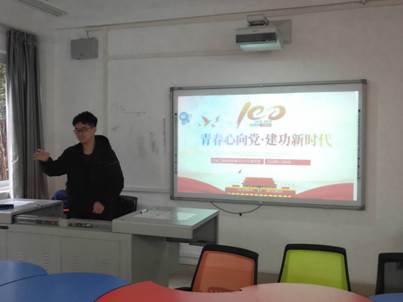 15时30分,活动正式开始之初,团支书张敏杰向同学们介绍了五四运动的背景及影响等,提到:本次活动主要是进一步加强同学们对共青团和党组织的认识和了解,激活同学们的活力和凝聚力,并带领全体团员重温入团誓词,全体同学起立,右手握拳,在宣誓词中唤起同学们内心的热血与慷慨;歌唱团歌,以一片慷慨激昂的歌声与那红色的旗帜呼应。