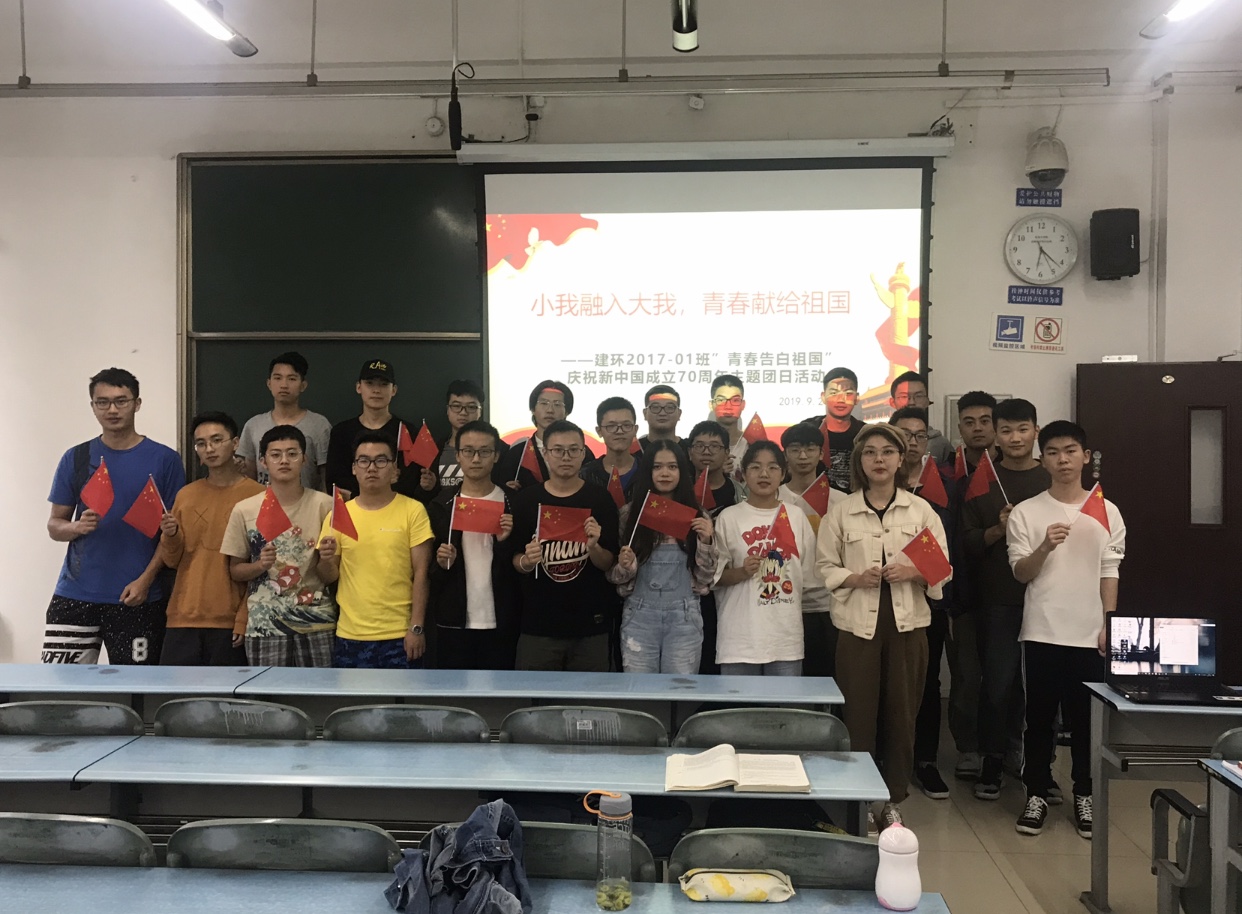 为庆祝新中国成立70周年,弘扬爱国主义精神,加强对团支部各位同学的爱国主义教育,进一步激发同志们的爱国热情,争做坚定的新时代青年护旗手。永利集团248cc登录建环2017级1班团支部以庆祝新中国成立70周年为主题在2019年9月20日下午19:00在X2223开展了“青春告白祖国——复兴交大我的责任,复兴交大我在行动”主题主题团日活动。