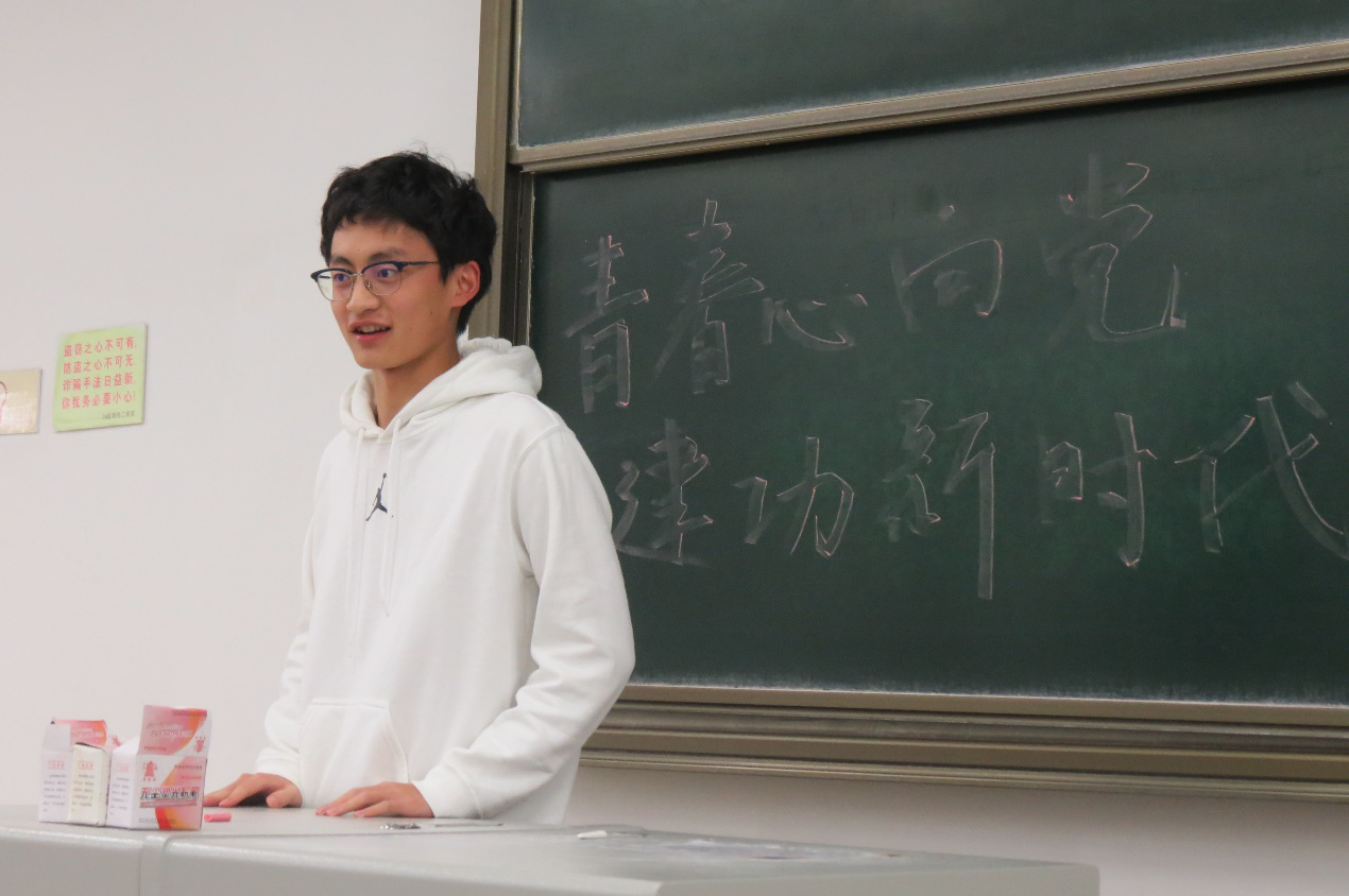 此次活动由团支书王一鑫同学主持,她谈到上个月举国欢庆为祖国母亲庆祝生日,一系列重大的阅兵仪式激起了大家浓烈的爱国热情,正因如此,我们需要进一步认同这种情怀和熏陶,争取在未来为国家,为党做出贡献。