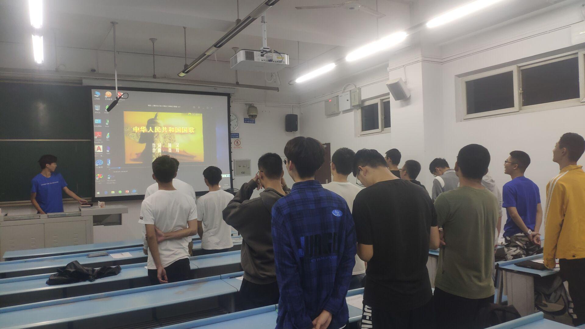在这之后,趁着同学们的热情,李念勋同学带领着同学们一起齐唱国歌。在悠扬洪亮的国歌声音中,同学们对祖国的热爱之情愈发深沉。