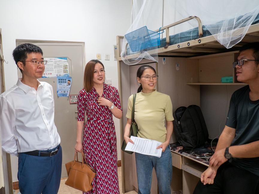 为帮助新生更快适应大学生活,了解学院新生基础情况,拉近师生之间的距离,学院党委书记袁艳平、副书记沙晓雪带领辅导员老师们走进学生宿舍,向新生表达了学院的热烈欢迎和深切关怀。老师们与同学们面对面交流,进一步了解新生的宿舍生活情况,督促同学们养成良好的生活习惯,共同营造一个和谐健康的宿舍生活环境。