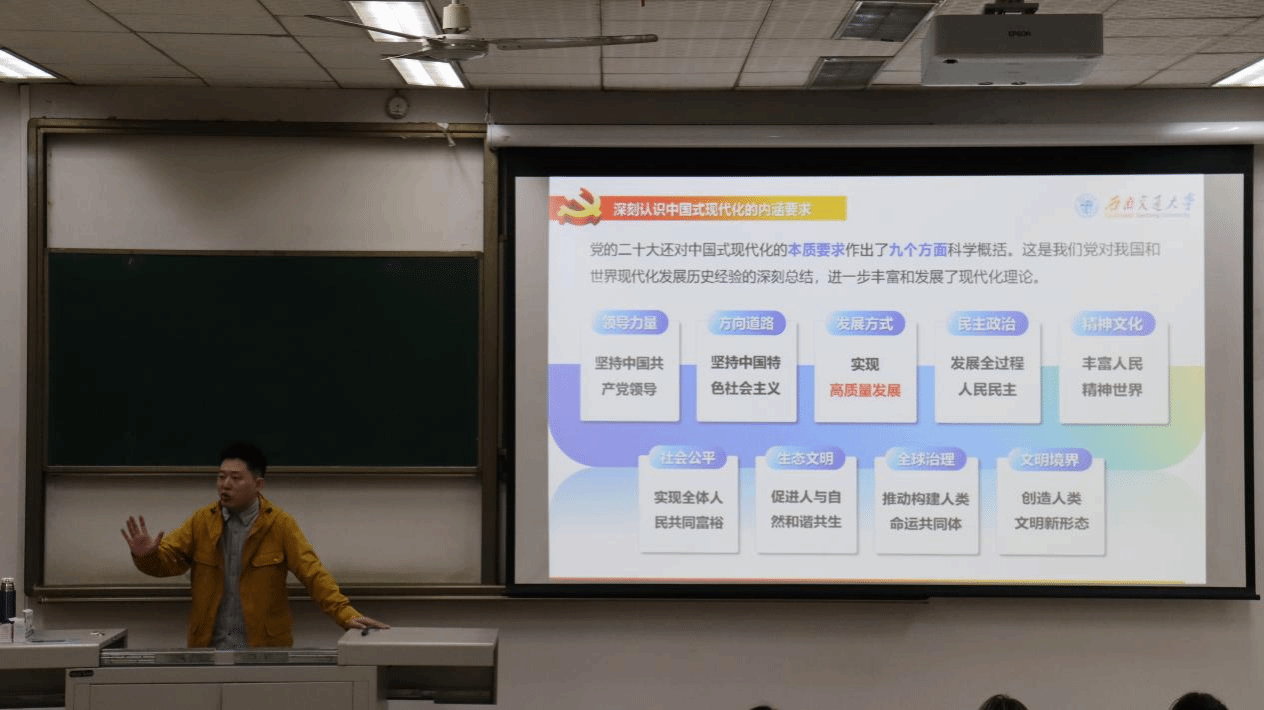 青年是整个社会中最积极、最有生气的力量。为了加强面向青年学生的理论宣讲,用党的创新理论武装青年,把青年团结起来、组织起来、动员起来,引导青年做新时代青年马克思主义者。永利集团248cc登录永利集团248cc登录于2023年11月2日在X1315开展机械工程学院青马工程暨第十二期团校骨干培训课程。本次团课我们有幸邀请到永利集团248cc登录马克思主义学院副教授马先睿老师作为本次课程的主讲人,他带来的主题为“深刻认识中国式现代化道路”。