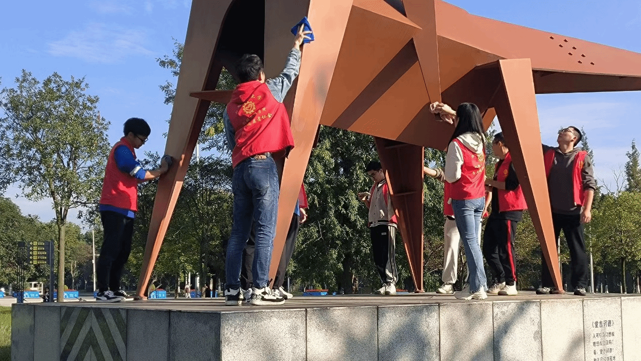 完成各项活动后,志愿者们在雕像前合影留念,志愿服务工作正式结束。