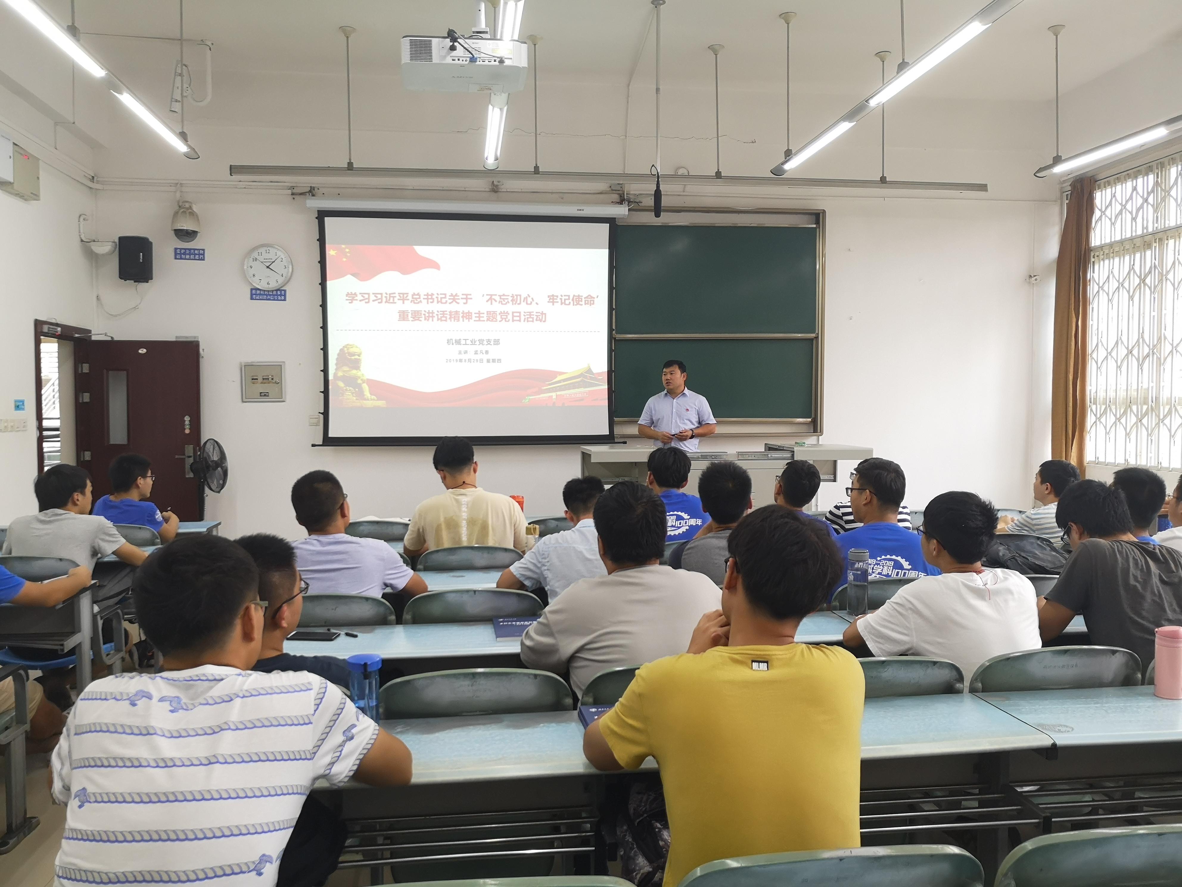 永利集团248cc登录永利集团248cc登录机械工业党支部于2019年8月29日星期四下午16:00-17.30在永利集团248cc登录犀浦校区2号教学楼X2231教室开展了关于习总书记“不忘初心,牢记使命”主题教育工作会议上的讲话精神要点学习党日活动,由永利集团248cc登录孟凡春书记主讲。