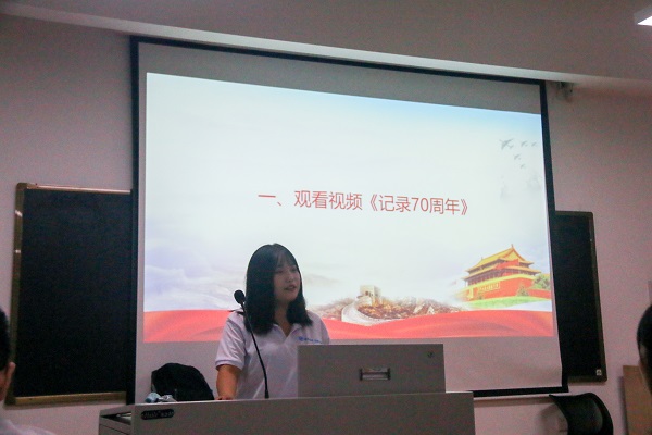 活动由周敏同学主持,她首先让大家观看了庆祝新中国成立70周年《纪录.70年》混剪视频,该短片讲述了新中国从成立到进入新时代间的点滴艰辛和喜悦,观看完之后,大家深受震撼。随后,退伍大学生谢云鹏同学分享了自己的爱国体验,他表示,大家的爱国之情流淌在大家的血液里,是一种潜移默化的情感,在生活中会不自觉地体现出来,如看见升国旗时会主动行注目礼,观看阅兵式时会有一种自豪感,在我国运动健儿夺冠时会十分激动,等等。作为退伍大学生,他谈到,军人的爱国体现在“听党指挥,能打胜仗,作风优良”,体现在对于上级传达的命令坚决执行,在和平年代,军人的主要职责是备战和抢险救灾,如在1998年的抗洪抢险、2008年的抗震救灾、2015年的天津港爆炸中,军人都是冲在最全面,付出了巨大牺牲。最后,他谈到,学生和各行各业的爱国,体现在爱自己、爱家人、爱朋友,爱周围一切美好的事物,同时,爱国还体现在完成自己的本职工作上,自己的工作做好了,自己和家庭才能感受到幸福美满,才能稳步提升,最终国家才能进步富强。