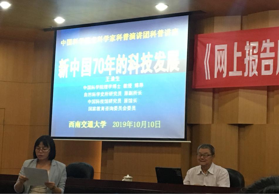 中共永利集团248cc登录永利集团248cc登录本科机械工业党支部于2019年10月10日星期四晚19:00-21.00在永利集团248cc登录犀浦校区图书馆2号报告厅参加了关于“新中国70年的科技发展”讲座,本次讲座由永利集团248cc登录承办,由中国科学院理学研究院研究员王渝生教授主讲。