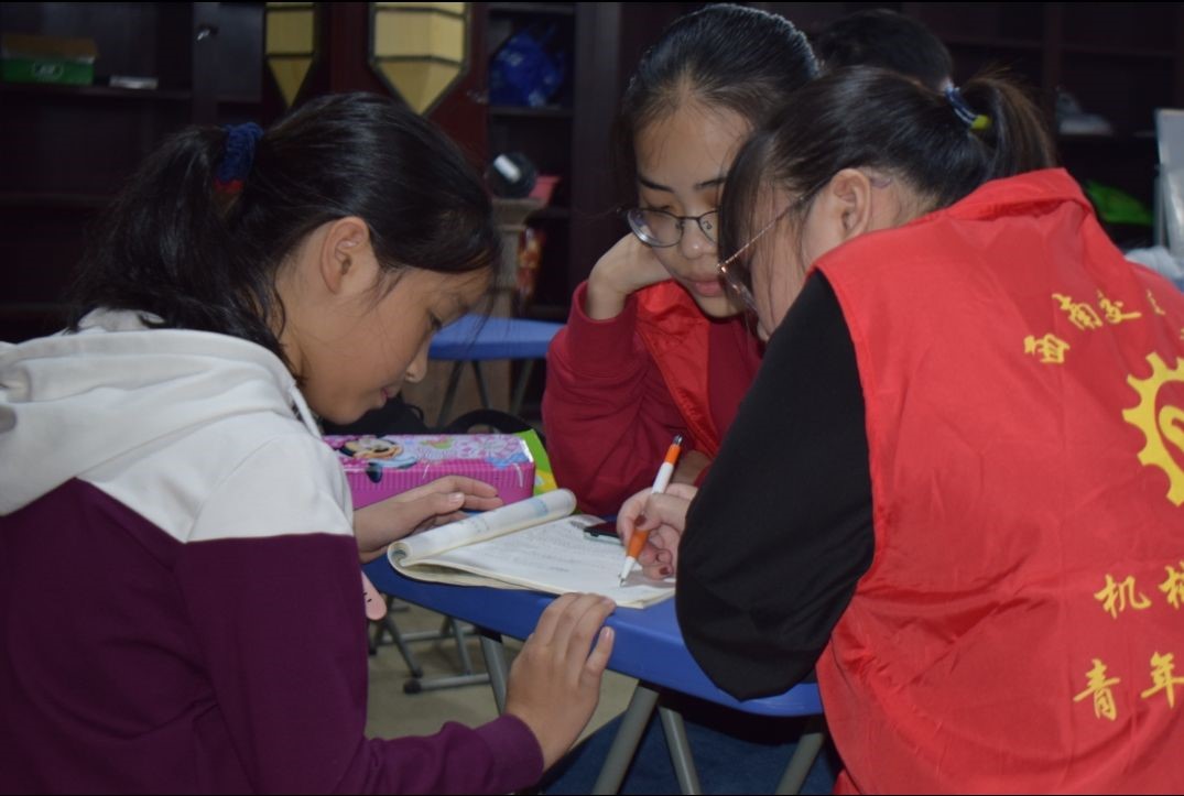 义教活动正式开始后,第一个环节是功课辅导,有的志愿者在帮小朋友检查作业,有的志愿者在与小朋友讨论学习问题,还有的志愿者在教小朋友读英语。小朋友们都非常认真地参与其中,眼中绽放出对学习的渴望,每个拼音,每个字母,每个数字,志愿者们细心地将错误一一纠正,孩子们学得很认真,而志愿者们教得也十分耐心,房间内笼罩着浓厚的学习氛围,在这种环境下学习也变得更加高效有趣。